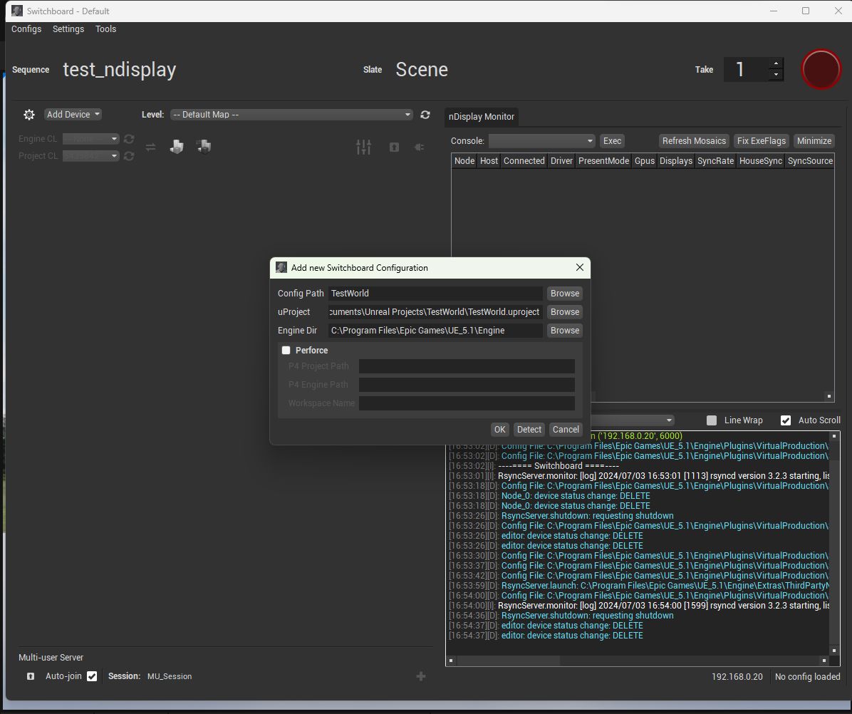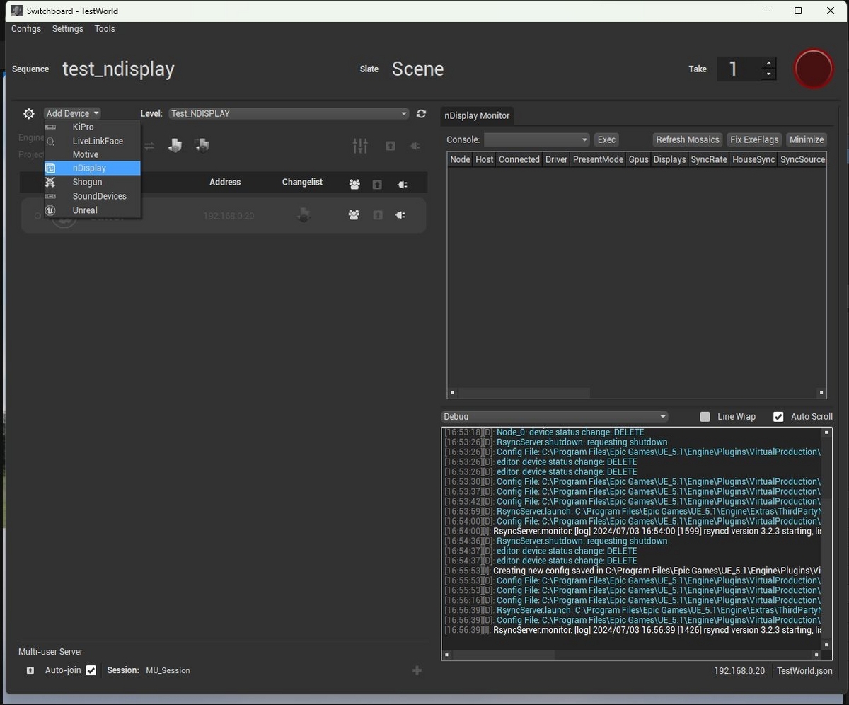 - Switchboardで、nDisplayを紐づける(このnDisplayからフルスクリーン描画を起動できるようになる)